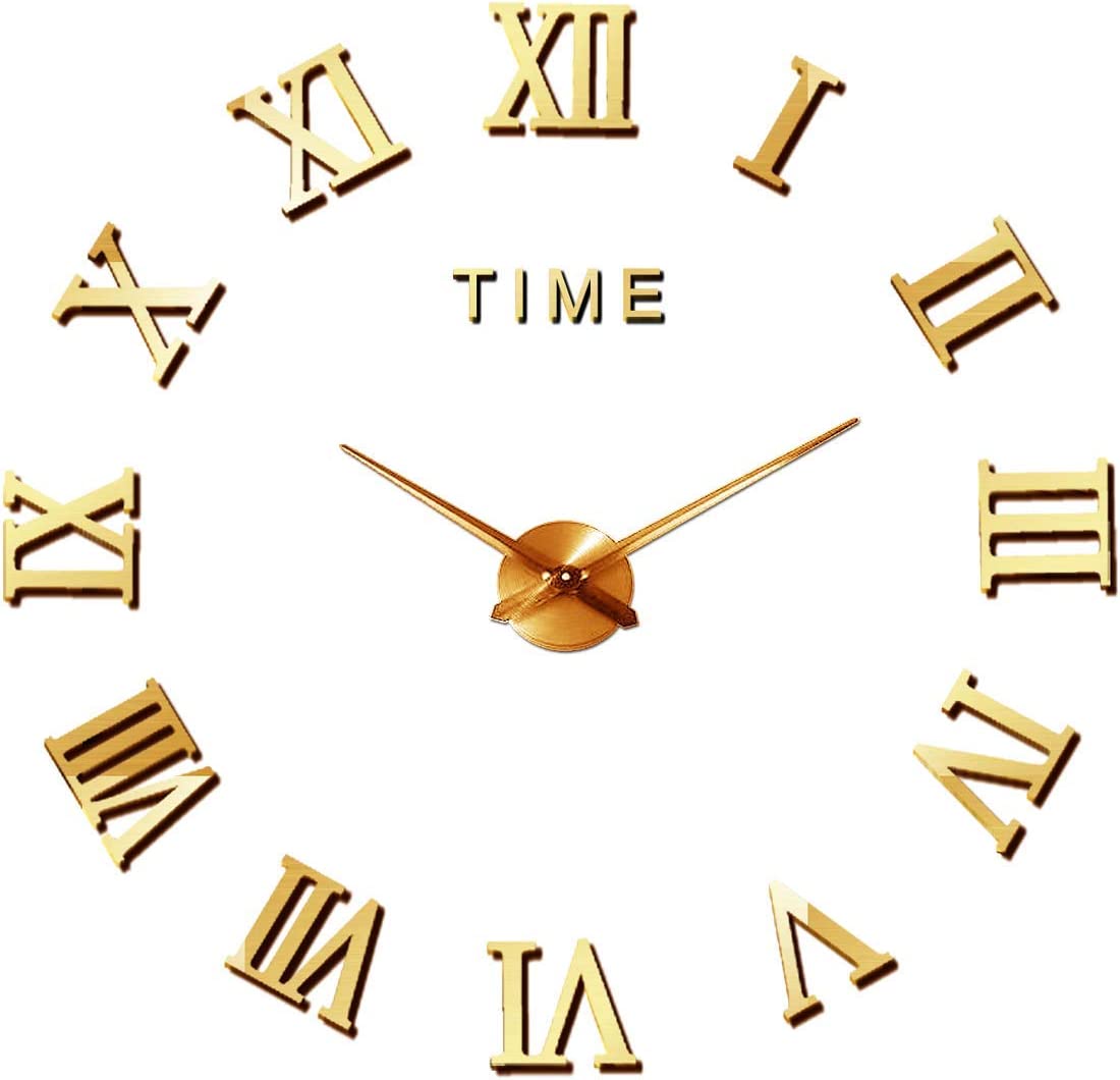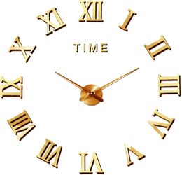 Αυτοκόλλητο Ρολόι Τοίχου Ακρυλικό DIY με Μηχανισμό Quartz και Λατινικούς Αριθμούς Time 40cm Χρυσό