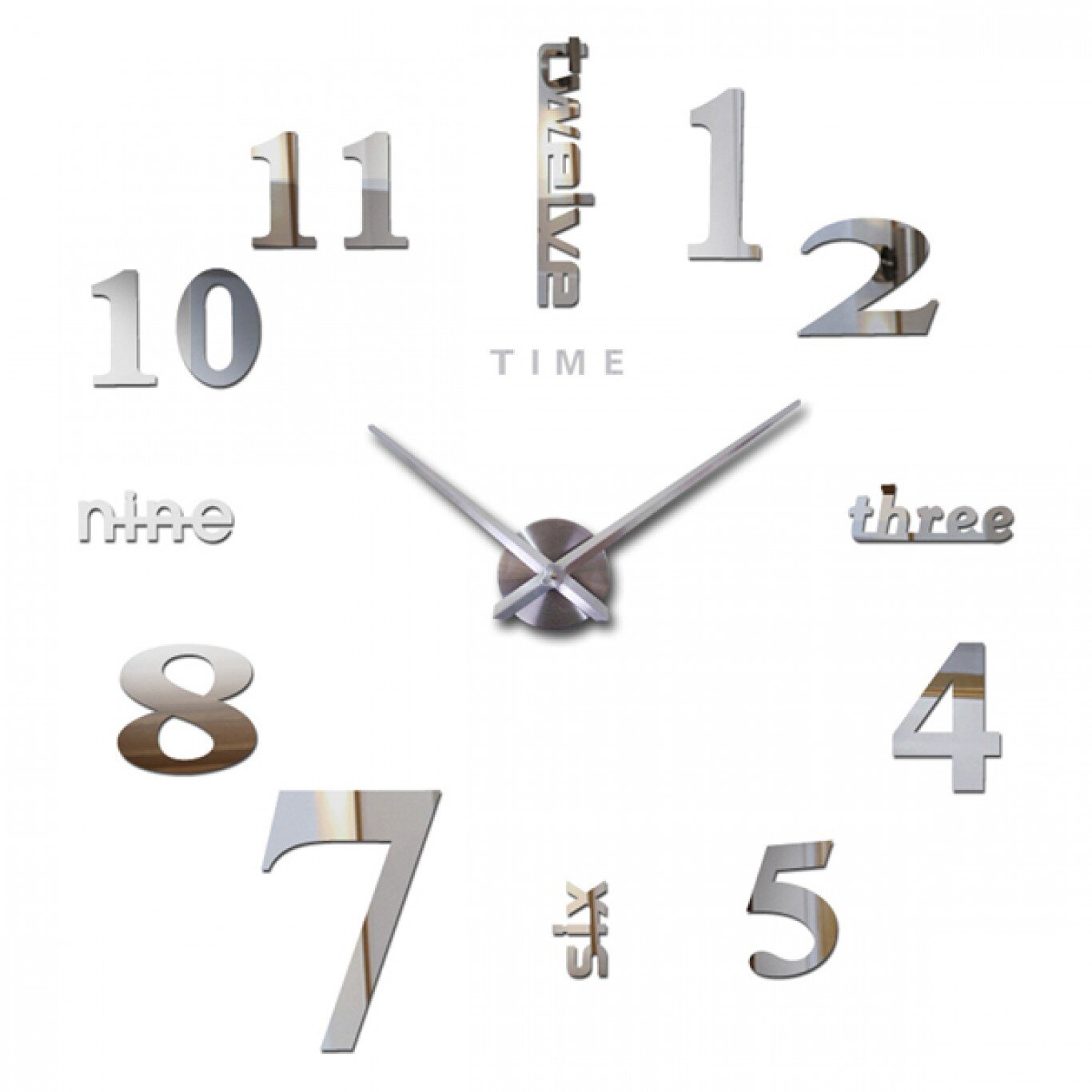 Αυτοκόλλητο Ρολόι Τοίχου Καθρέφτης Ακρυλικό DIY με Μηχανισμό Quartz με Γράμματα και Αριθμούς 80x80cm