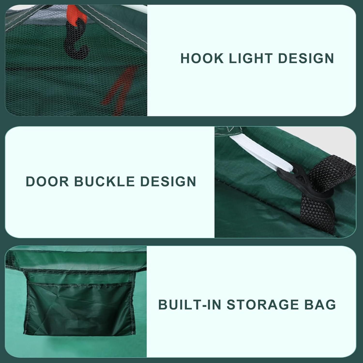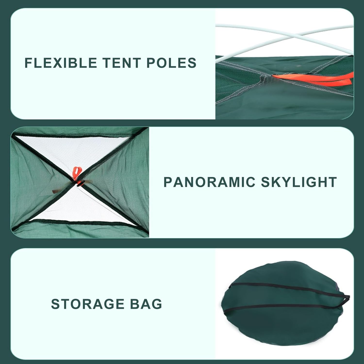 Ο έξυπνος μηχανισμός αυτόματου ανοίγματος επιτρέπει τη γρήγορη εγκατάσταση σε λίγα δευτερόλεπτα, χωρίς να απαιτείται τεχνική εμπειρία. Η ευρύχωρη κατασκευή της επιτρέπει να φιλοξενήσει έως και τέσσερα άτομα, καθιστώντας την ιδανική επιλογή για οικογένειες ή παρέες.
