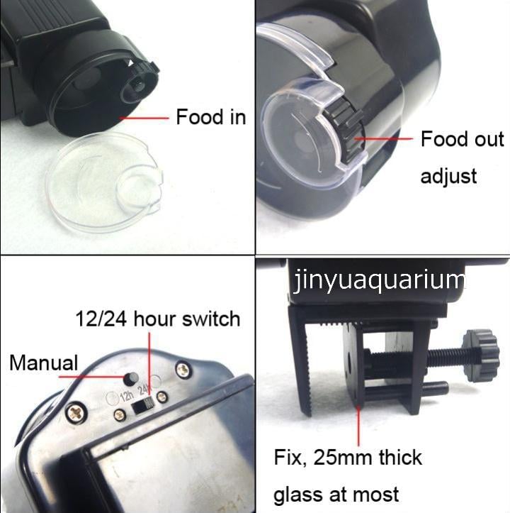 Η αυτόματη ταΐστρα ψαριών είναι κατάλληλη για τζάμι πάχους έως 25mm και τροφές διαστάσεων έως 8mm.