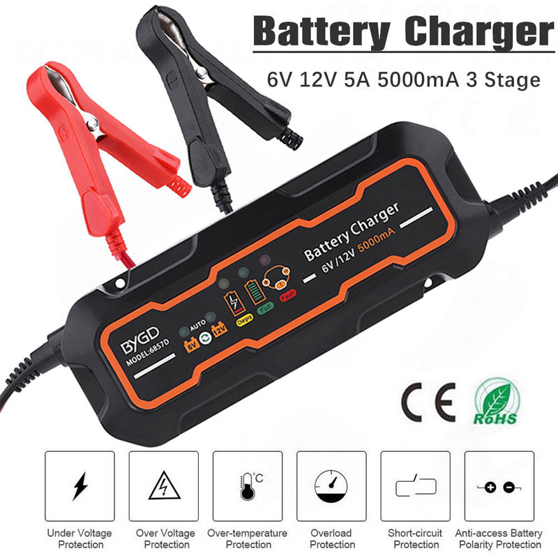- Αυτόματος φορτιστής μπαταρίας 6V/12V 5A ασφαλής φόρτιση σε 3 στάδια