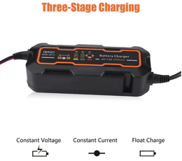 Φορτιστής μπαταρίας αυτοκινήτου με λειτουργία αυτόματης φόρτισης, προστατεύει τη μπαταρία σας από την υπερφόρτωση και αναγνωρίζει αν η μπαταρία είναι 6V ή 12V, έτσι μπορείτε να αφήσετε το φορτιστή συνδεδεμένο στην μπαταρία μόνιμα χωρίς να έχετε πρόβλημα. Εξελιγμένη διαδικασία 3 σταδίων φόρτισης.