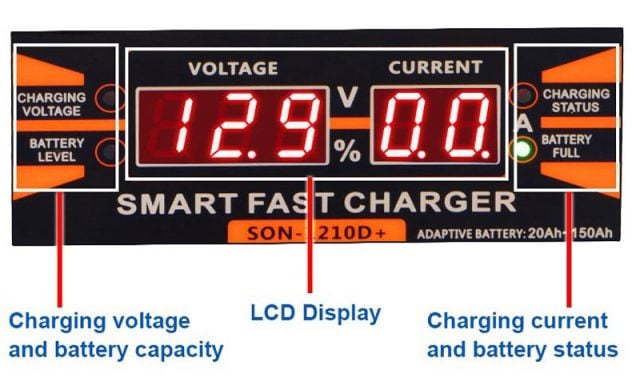 - Οθόνη LCD: Τάση φόρτισης / χωρητικότητα μπαταρίας / τρέχουσα φόρτιση