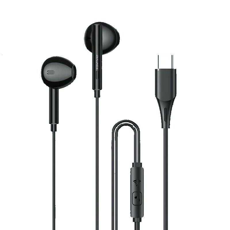 Awei® Ενσύρματα Ακουστικά Handsfree με Βύσμα Type C Μαύρα - In-ear Handsfree PC-1T