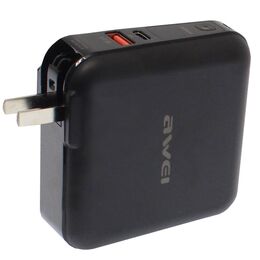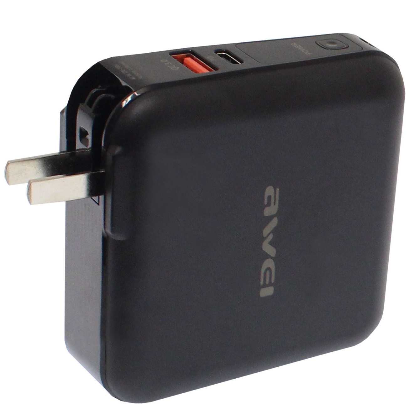 Awei Φορητή Μπαταρία Φορτιστής - Power Bank 15000mAh 2.4A - LED Ένδειξη Μπαταρίας - Θύρες USB-A & USB-C Quick Charge 3.0 Ταχυφορτιστής - Βάση Κινητού