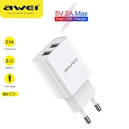Awei Φορτιστής Πρίζας με 2 Θύρες USB 2.1A Γρήγορης Φόρτισης