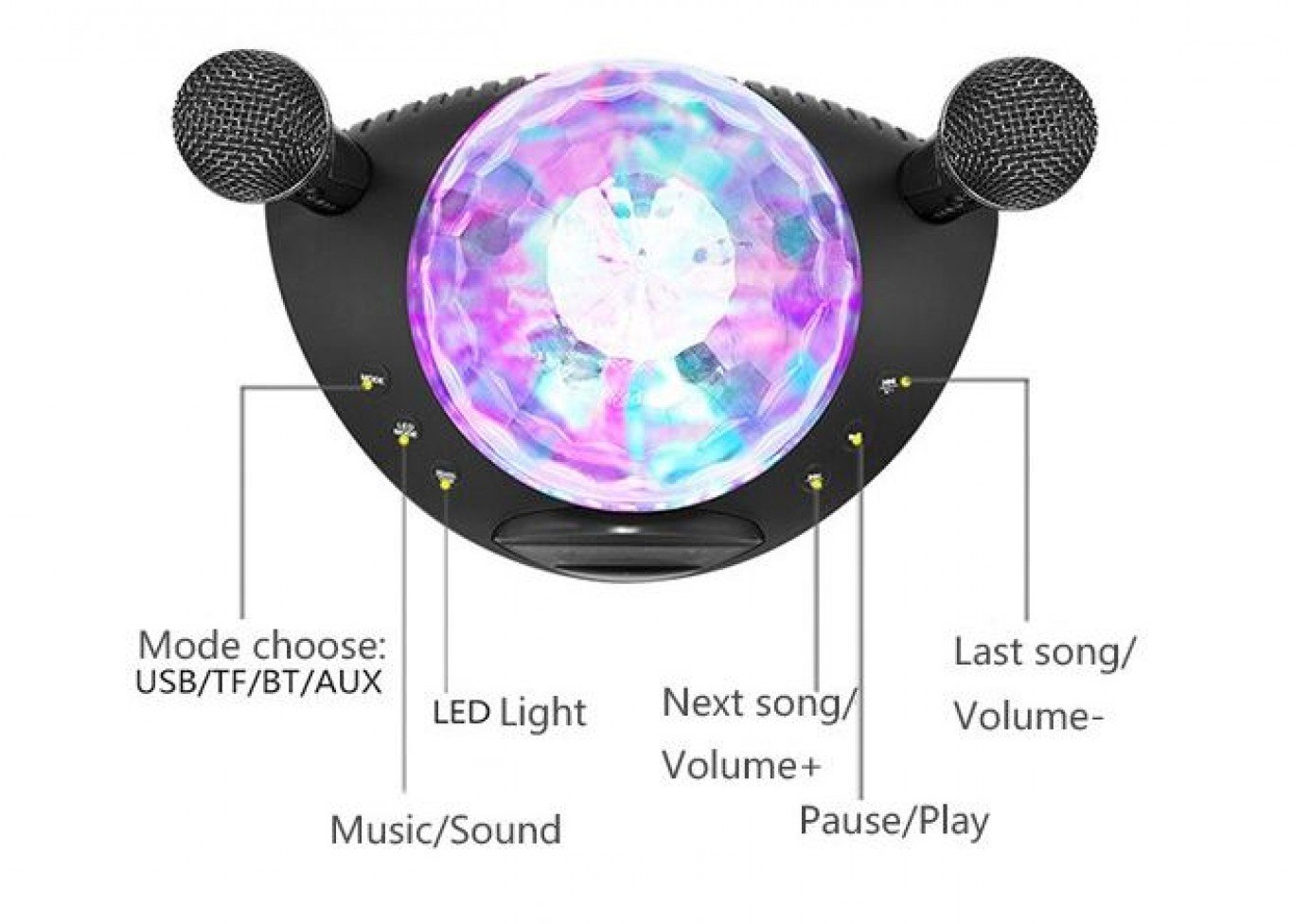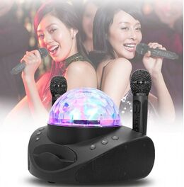 Bluetooth Φορητό Ηχοσύστημα Karaoke με 2 Ασύρματα Μικρόφωνα, Disco Crystal & USB/SD Player - 20W Μαύρο