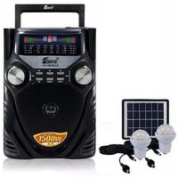 Εξαιρετικής ποιότητας και απόδοσης ηλιακό επαναφορτιζόμενο ηχοσύστημα ραδιόφωνο και Mp3 Player. Με ραδιόφωνο παγκόσμιας λήψης (FM/AM/SW), μεγάλο ηχείο, πολύ δυνατό και καθαρό ήχο. Παράλληλα λειτουργεί σαν ηλιακό κιτ φωτισμού με 2 λάμπες LED 6 Watt.