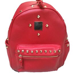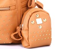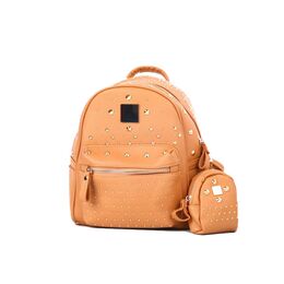 Δερμάτινο Γυναικείο Σακίδιο Πλάτης με Χρυσαφί Καρφάκια & Πορτοφολάκι - Κλειδοθήκη