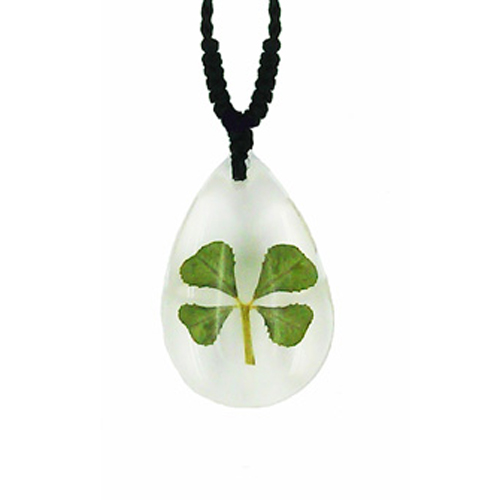 Διαφανές Μενταγιόν με Γνήσιο Τετράφυλλο Τριφύλλι
