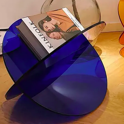 Διάφανη Διακοσμητική Θήκη - Βάση Περιοδικών & Εντύπων Ακρυλική σε Μπλε Χρώμα 32.7x32.7cm