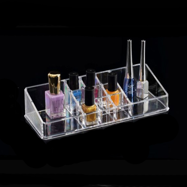 Είναι κατασκευασμένος από διάφανο ακρυλικό plexiglass πολύ ανθεκτικό. Το σχέδιο της είναι σε σχήμα ορθογώνιο, με τετράγωνες μεγάλες πλαινές θήκες και ενδιάμεσα τους 9 μικρες τετράγωνες θηκες , για να τοποθετήσετε οτιδήποτε θέλετε!
