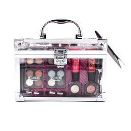 Βαλίτσα από διάφανο πλαστικό που περιέχει 41 αξεσουάρ μακιγιάζ για τα μάτια, τα χείλη, το πρόσωπο και τα νύχια σας, για μια περιποιημένη και άψογη εμφάνιση από το πρωί ως το βράδυ!