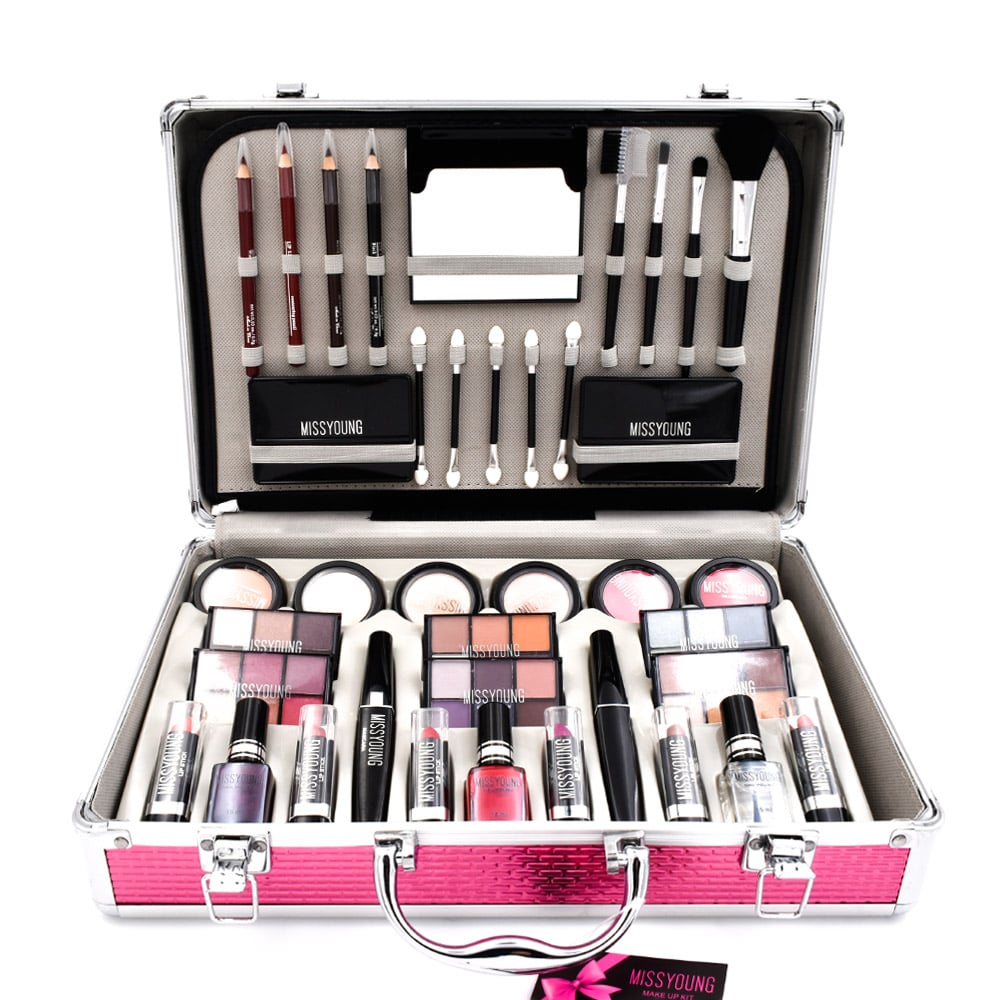 Διάφανο Βαλιτσάκι Μακιγιάζ με 69τμχ - Miss Young Make up Set MC1156 - Ροζ