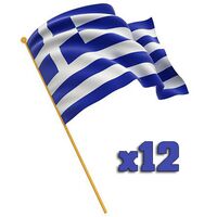 12 Σημαιάκια Ελληνικά διαστάσεων 40 Χ 30 cm. Ξύλινη λαβή 60cm. Ιδανικά για Εθνικές εορτές, εκδηλώσεις, στολισμό κτιρίων κλπ. Ανθεκτικό κοντάρι διαμέτρου 8 χιλιοστών. Με ραφές περιμετρικά για να μην ξεφτίζει. Με ξύλινη σφαίρα στην κορυφή για ασφάλεια. Οικολογικό γιατί αντέχει, δεν είναι μίας χρήσης.