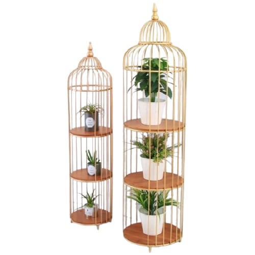 Διακοσμητικά μεταλλικά κλουβιά με τρία ξύλινα ράφια αποτελούν μία εξαιρετική επιλογή για να τοποθετείτε και να προβάλλετε τα φυτά σας και άλλα διακοσμητικά αντικείμενα.