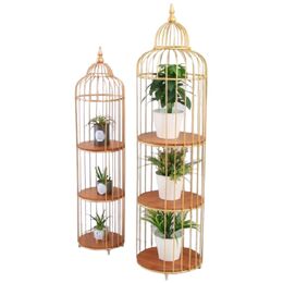 Διακοσμητικά Μεταλλικά Κλουβιά με 3 Ξύλινα Ράφια σετ 2 τεμ 32x32x130cm και 40x40x155cm - OEM