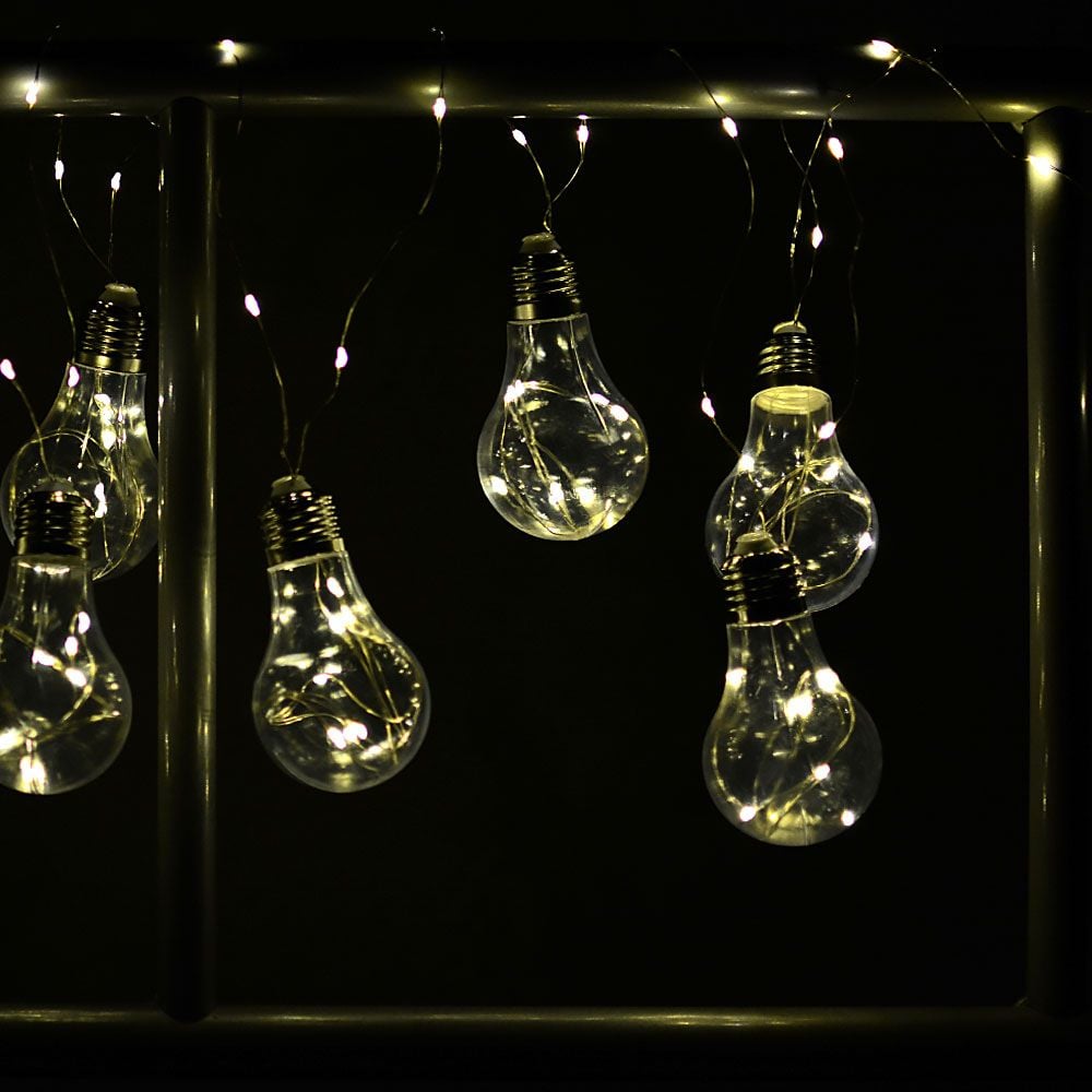 Η γιρλάντα αποτελείται από 10 vintage βιδωτούς λαμπτήρες τύπου Έντισον, που καθένας περιέχει led φωτάκια καλωδίου χαλκού, λευκού θερμού φωτός.