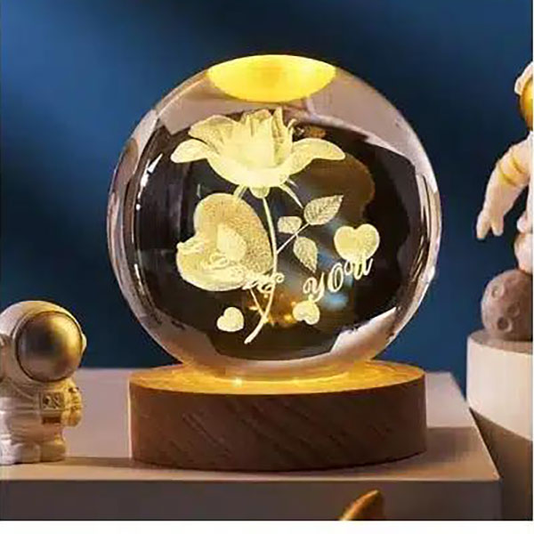Με εσωτερική χάραξη από λέιζερ που εκφράζει την αγάπη σας μέσω ενός λουλουδιού, δημιουργώντας ένα μαγικό ρομαντικό τοπίο κλεισμένο μέσα σε μια σφαίρα .