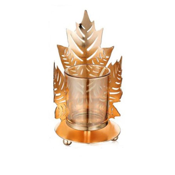Διακοσμητικό Επιτραπέζιο Κηροπήγιο Φύλλο Χρυσό 16x9cm