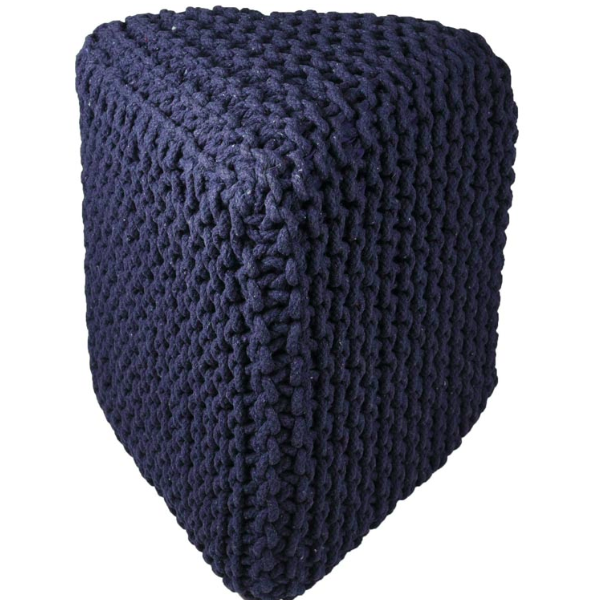 Διακοσμητικό Πλεκτό Πουφ σε Τρίγωνο Σχήμα Μπλε 42x42x42cm