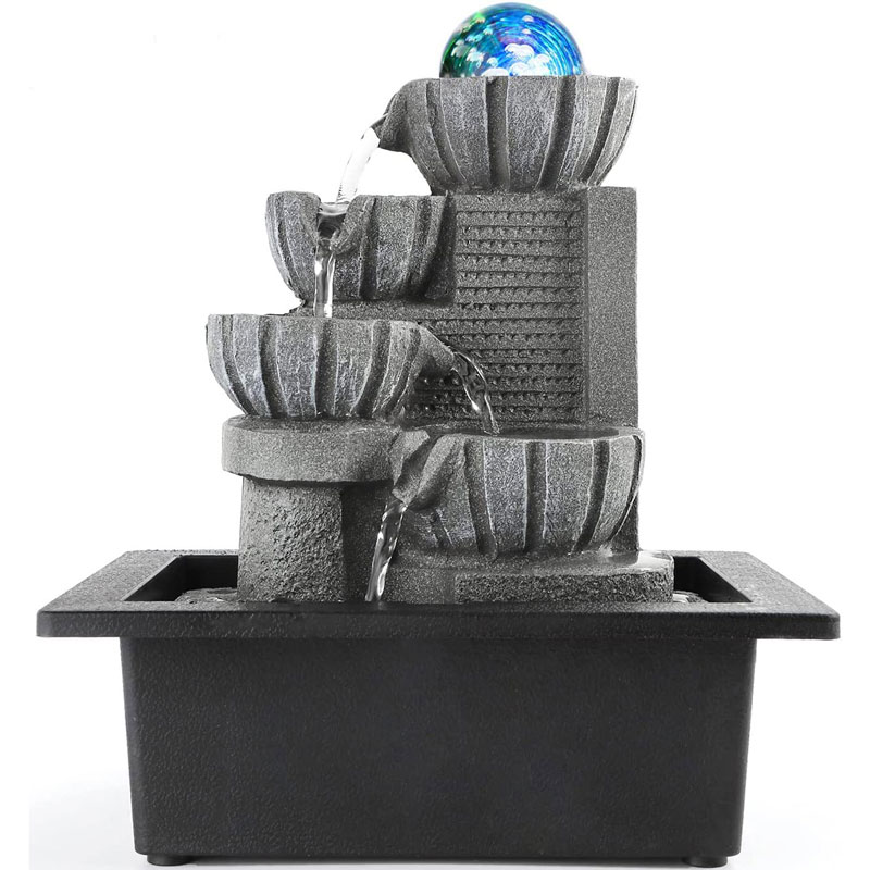 Διακοσμητικό Συντριβάνι Feng Shui Καταρράκτης Τρεχούμενου Νερού με Εφέ LED Φωτισμού και Κρυστάλλινη Σφαίρα 26x23x18 cm