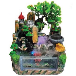 - 1 x Διακοσμητικό Συντριβάνι Feng Shui με Σπιτάκι, Δέντρο, Λίμνη, Τρεχούμενο Νερό & Πολύχρωμο Φωτισμό LED 30x20x30cm