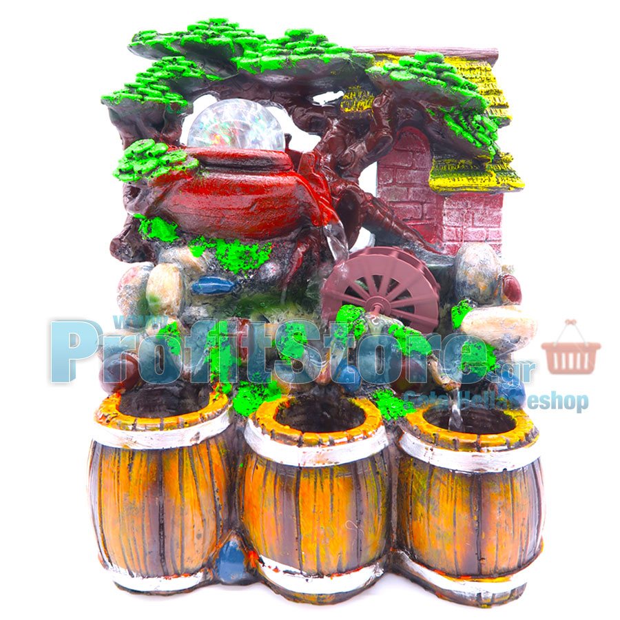 - Διακοσμητικό συντριβάνι με τρεχούμενο νερό, νερόμυλο και φωτισμό