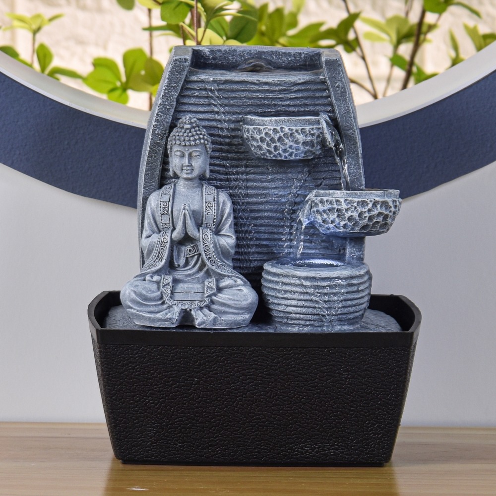 Διακοσμητικό Συντριβάνι Χαλάρωσης με LED Φωτισμό & Τρεχούμενο Νερό Βούδας 15x20x26cm - Feng Shui Sagesse Fountain