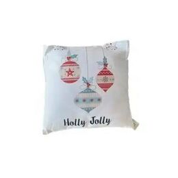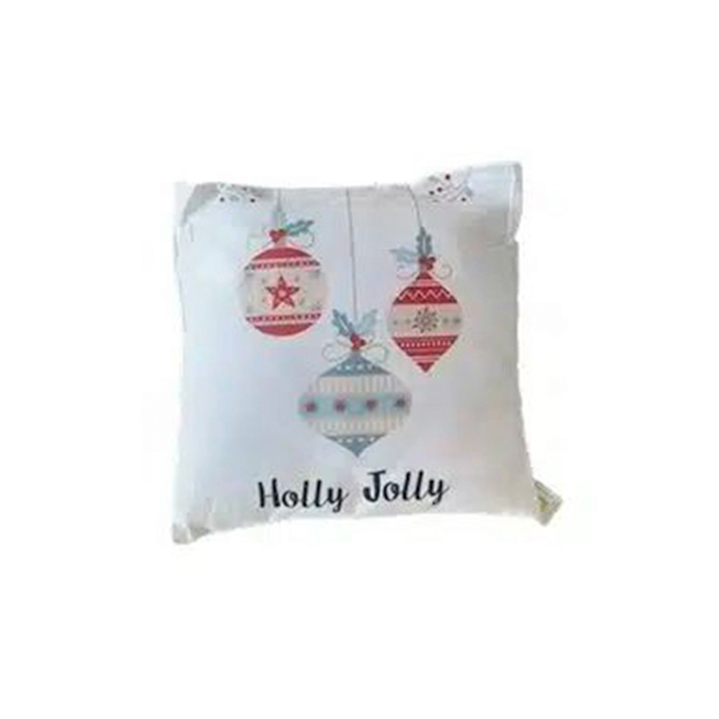 Διακοσμητικό Χριστουγεννιάτικο Μαξιλάρι Λευκό με Σχέδιο Χριστουγεννιάτικες Μπάλες Στολίδια 43x43cm