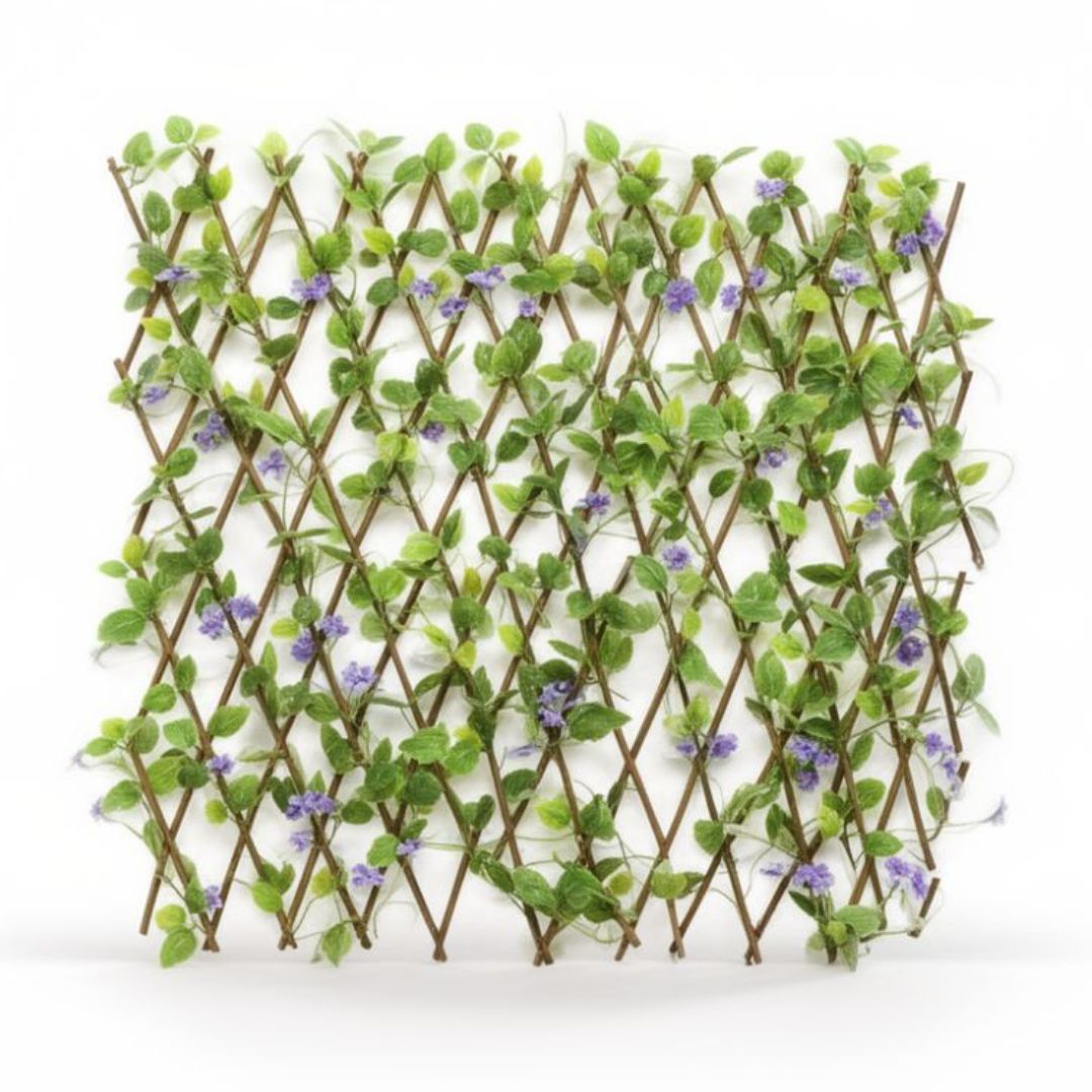 Δώστε στον χώρο σας φυσικό χαρακτήρα εύκολα και γρήγορα, επιλέγοντας έναν διακοσμητικό φράχτη πέργκολας με τεχνητή φυλλωσιά και μωβ άνθη.