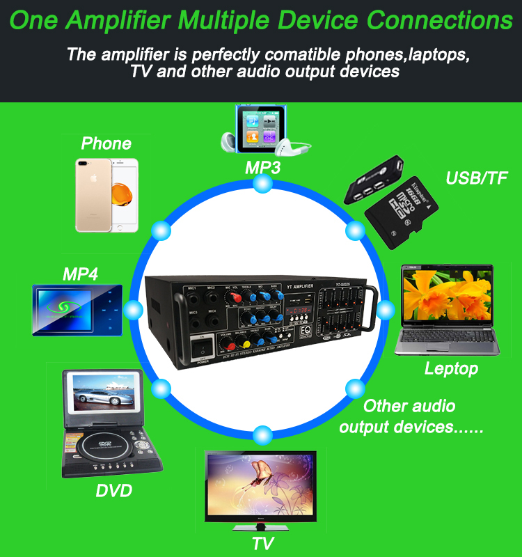 Ενας ενισχυτής με πολλαπλές συνδέσεις. Ο Ενισχυτής YT-G0326 είναι απόλυτα συμβατός με κινητά τηλέφωνα, λάπτοπ, τηλεοράσεις και άλλες συσκευές που έχουν έξοδο ήχου.
