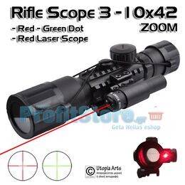 Διόπτρα Μονόκυαλο Σκοπευτικό - Παρατήρησης Zoom 3-10x42mm με φωτιζόμενο σταυρόνημα και Laser στόχευσης 1mW.