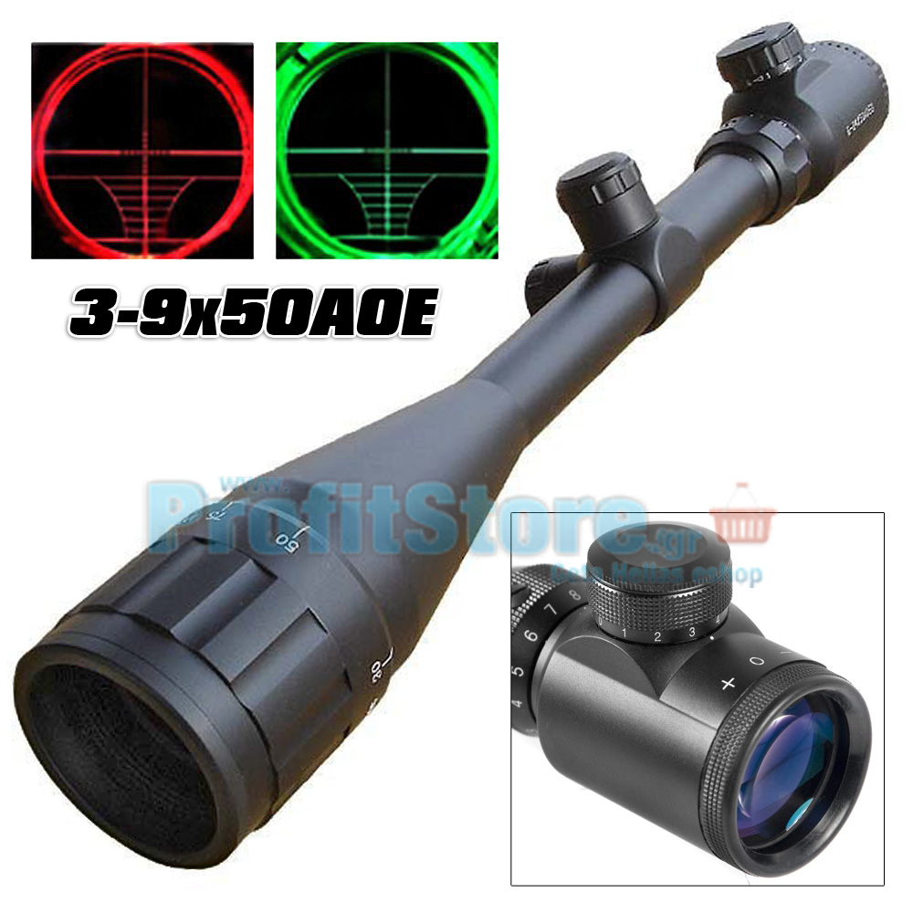 Hunting Rifle Scope 3 - 9×50 AΟΕ Red & Green Illuminated Crosshair Gun Scopes Features: