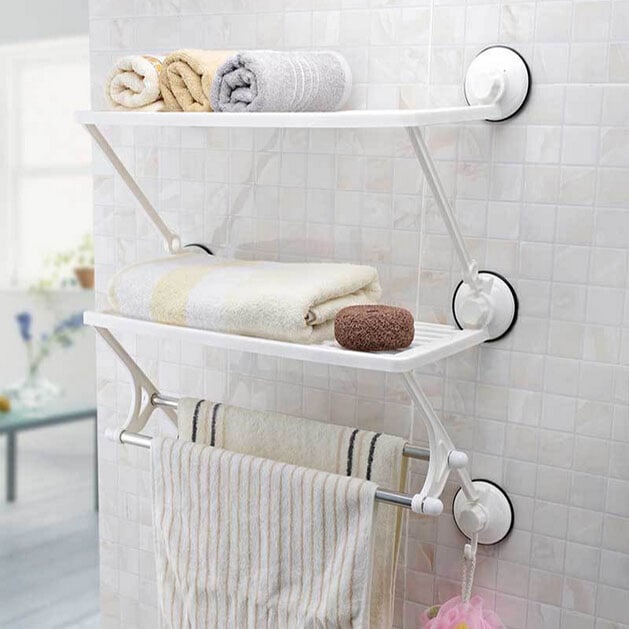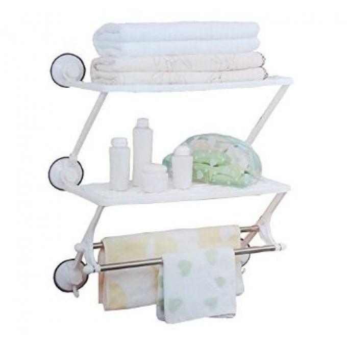 Διπλή Ραφιέρα Κουζίνας / Μπάνιου με Πετσετοκρεμάστρα και μηχανισμό Βεντούζας