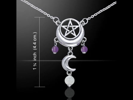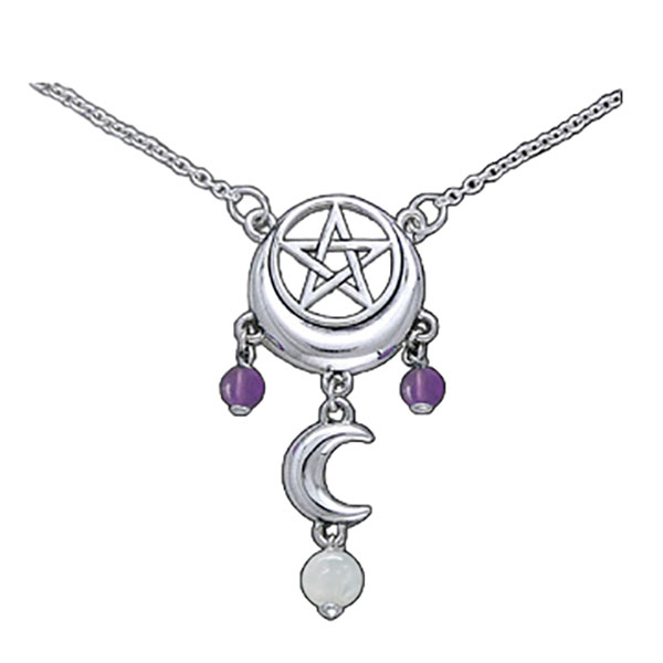 Η Σελήνη, αρχαίο σύμβολο ομορφιάς, διαίσθησης και δύναμης ενώνεται με την πεντάλφα, σύμβολο αιώνιας προστασίας και επιθυμίας. Το φυλαχτό αυτό ενδυναμώνεται από τον Αμέθυστο, λίθο της ομορφιάς και της γοητείας και τη Φεγγαρόπετρα που ενισχύει τις ψυχικές δυνάμεις.