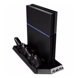 Κάθετη Διπλή Βάση Φόρτισης Χειριστηρίων PS4 & Stand με Ανεμιστήρα Κονσόλας με 3 x USB Θύρες Φόρτισης - PS4 Console Cooling Stand Dobe & Controller Charger
