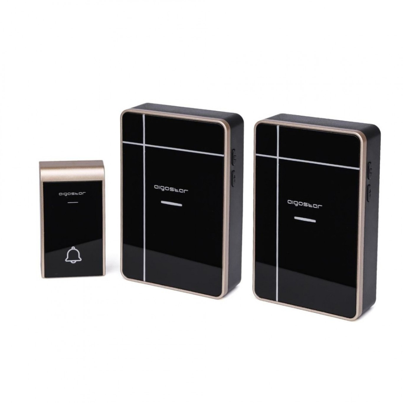 Διπλό Ασύρματο Κουδούνι Μπαταρίας Μακράς Εμβέλειας 150μ με 36 Μελωδίες - Aigostar Μαύρο