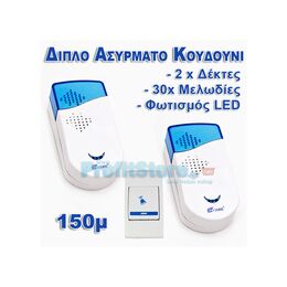Διπλό Ασύρματο Κουδούνι Πόρτας Μακράς Εμβέλειας 150μ με 30 Μελωδίες & Φωτισμό