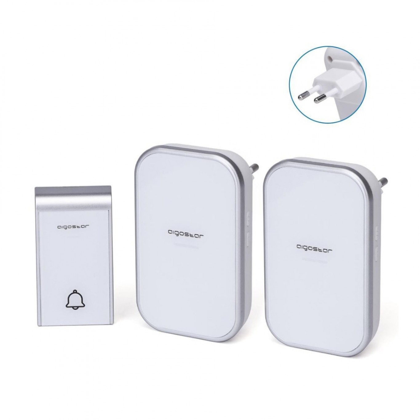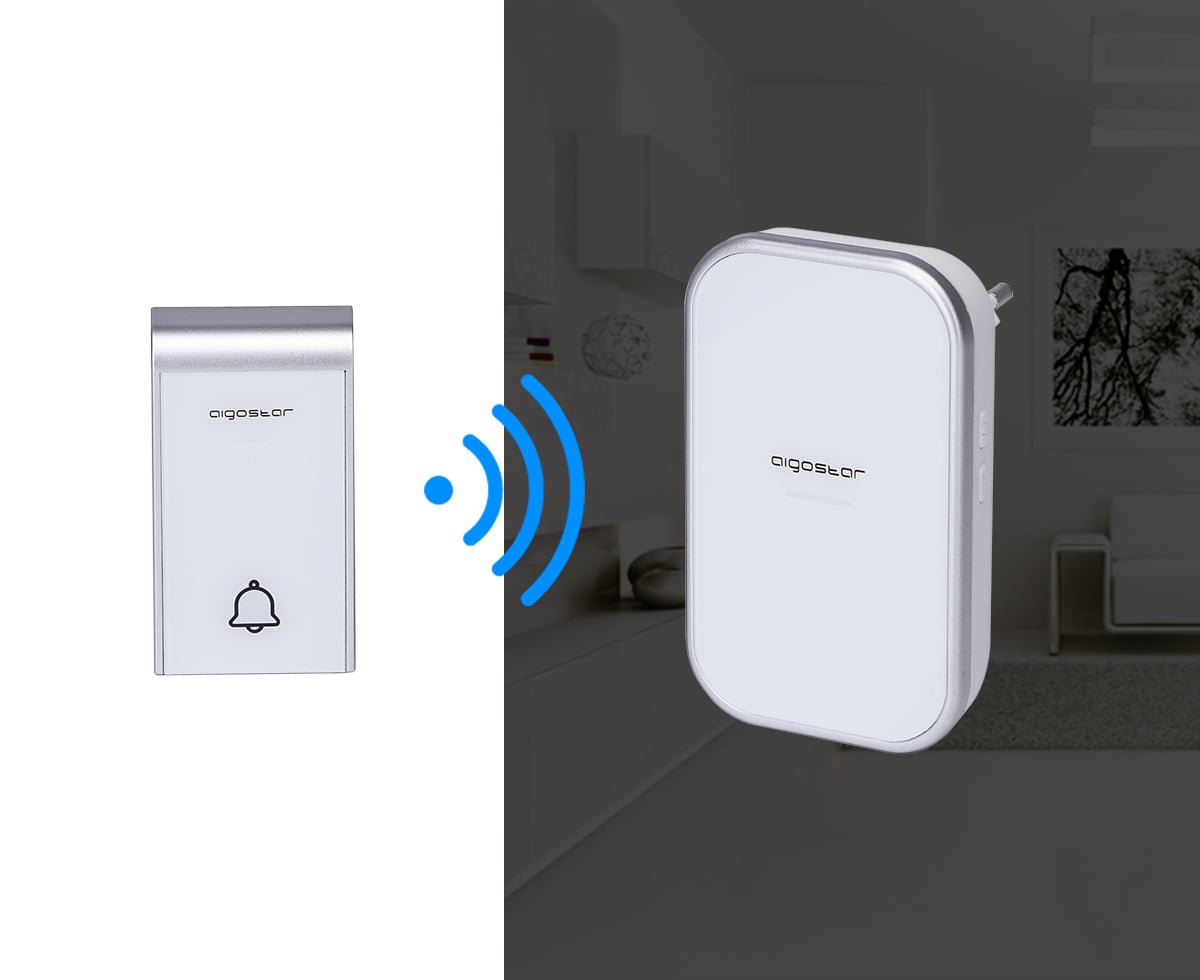 Διπλό Ασύρματο Κουδούνι Ρεύματος Μακράς Εμβέλειας 150μ με 36 Μελωδίες - Aigostar Λευκό