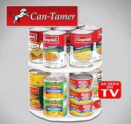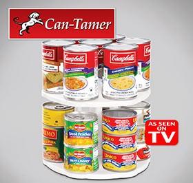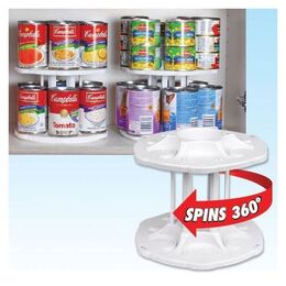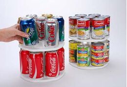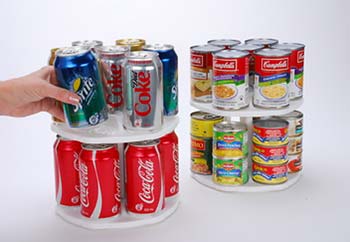 Δύο διπλά Can Tamer Carousel που τοποθετείτε γρήγορα και εύκολα σε ντουλάπι, ψυγείο ή πάγκο.
