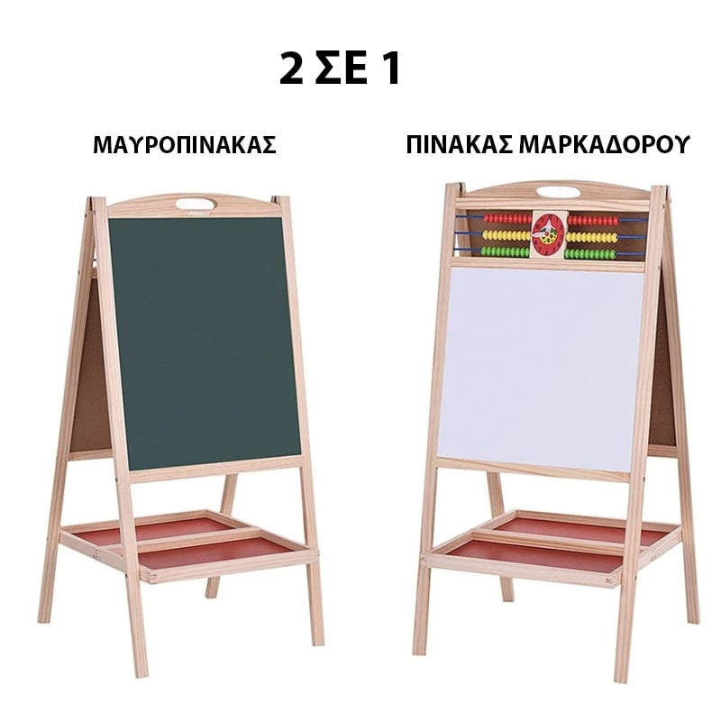 Διπλός Επιδαπέδιος Αναδιπλούμενος Μαγνητικός Πίνακας Ζωγραφικής Μαρκαδόρου - Μαυροπίνακας με Αβάκα, Ρολόι, Κιμωλίες, Σφουγγάρι & Μαρκαδόρους