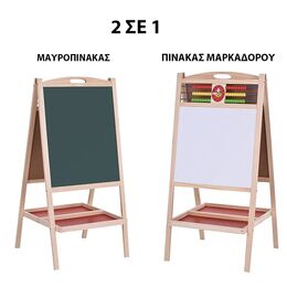 - 1 x Διπλός Επιδαπέδιος Αναδιπλούμενος Μαγνητικός Πίνακας Ζωγραφικής Μαρκαδόρου - Μαυροπίνακας με Αβάκα, Ρολόι, Κιμωλίες, Σφουγγάρι & Μαρκαδόρους