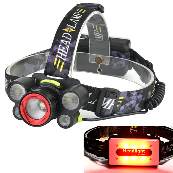 Διπλός Φακός Κεφαλής με 8 LED & Οπίσθια Φώτα Ποδηλάτου T6 Υψηλής φωτεινότητας με Zoom - USB Επαναφορτιζόμενος Headlamp with Backhead Light