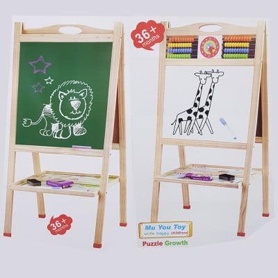 Διαθέτει από την μία πλευρά μαγνητικό λευκό πίνακα για να γράφετε και να σχεδιάζετε με μαρκαδόρους (whiteboard marker) και από την άλλη μαυροπίνακα για να χρωματίζετε με πολύχρωμες κιμωλίες! Τα παιδιά μπορούν να χρησιμοποιήσουν τον ειδικό μαρκαδόρο για να γράψουν ή να σχεδιάσουν και στη συνέχεια να βιώσουν κάτι από το παρελθόν γράφοντας με κιμωλίες.