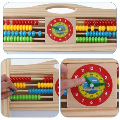 - Ο πίνακας διαθέτει ρολόι έτσι ώστε τα μικρότερα παιδιά να μπορούν να μάθουν την ώρα και άβακα για τους υπολογισμούς τους