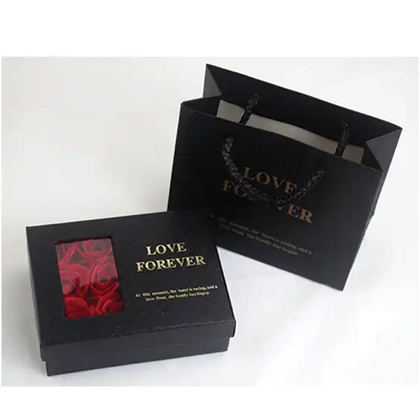 Δώρο Αγίου Βαλεντίνου 6 Κόκκινα Τριαντάφυλλα σε Μαύρο Κουτί Δώρου με Θήκη για Κόσμημα και Τσαντάκι 13x9.5x4.5cm