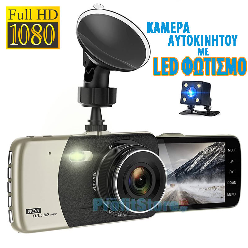 DVR Καταγραφικό Αυτοκινήτου με Φωτισμό LED Full HD 1080P Wide 170ᵒ με Κάμερα Παρκαρίσματος, Parking Monitor G-Sensor & Ανιχνευτή Κίνησης