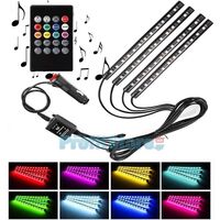 Φωτορυθμικό - διακοσμητικός φωτισμός για το σαλόνι του αυτοκινήτου! 4 x Ταινίες LED με τηλεχειριστήριο και ενσωματωμένο μικρόφωνο για να αλλάζουν χρώμα με τον ρυθμό της μουσικής ή κατ' επιθυμία! Δημιουργήστε ξεχωριστή ατμόσφαιρα και εκπλήξτε τους συνεπιβάτες σας.