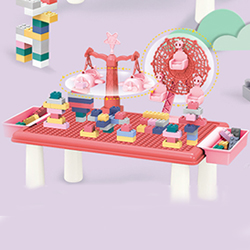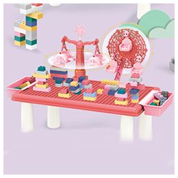 Εκπαιδευτικό Επιτραπέζιο Παιχνίδι Κατασκευής Λούνα Παρκ με Τουβλάκια 69τεμ & Τραπεζάκι Ροζ